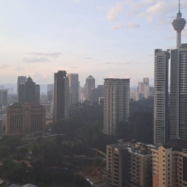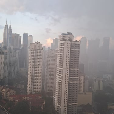 Then later in the evening, as we were reading, we finally got to see a torrential downpour of rain as the heavens opened up. I couldn’t really capture it in a photo, and even in the video, it doesn’t look that impressive, but it was quite something. We couldn’t even see the Petronas towers or the KL tower as the clouds and rain obscured them! It didn’t last very long – maybe 20 minutes or so, but it was torrential.