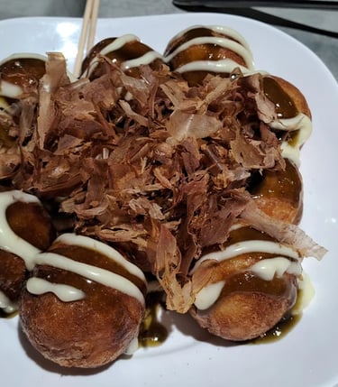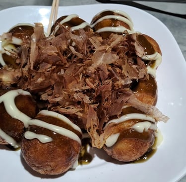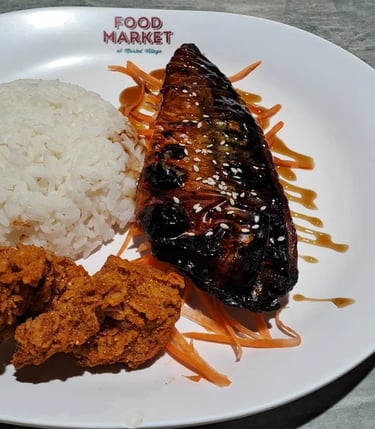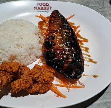 Later in the evening, we headed over to the Market Village Mall for our evening dinner and walk. I had a very tasty fish and rice dish, and R had a fried rice dish for a change. He also bought these little chicken and prawn deep-fried balls and with some sort of shavings and sauce over them. They looked nicer than they were, as they were a bit on the bland front - perhaps they just needed a little salt?