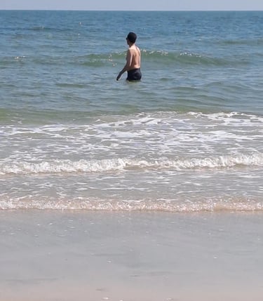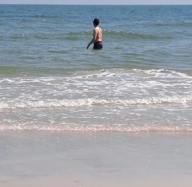 Whilst at the beach, I had said to R a few times that he should probably get his cap for his head as he didn't want to end up with sunburn on his head. He declined and said he would be fine, and his head was actually fine.