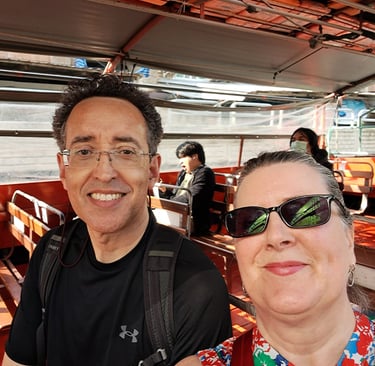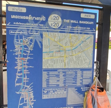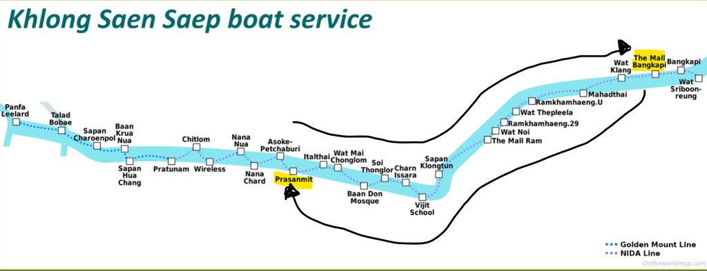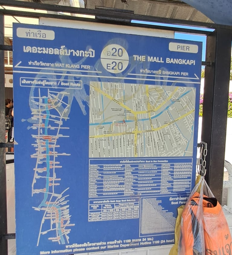 Then it’s off to the Prasamit pier, and before we know it, we are on our way to ‘The Mall Bangkapi’ pier. This is a longer journey than yesterday, but it is a lot quieter, and we easily get a seat. Then the fun really starts as the boat whizzes at speed (and I am not exaggerating) along the canal. We laugh that people would pay good money to have this exciting, bouncy ride with the water splashing up the sides as it moves swiftly along its course. It’s a great way to travel and such a bargain at only 20 baht each (less than £0.50).