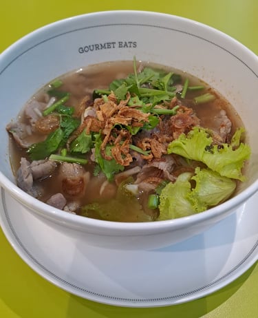 I decided to go for a Vietnamese beef pho dish, and R went for a chicken Khao soi (creamy chicken curry with noodles). Both were delicious, and the total came to less than £5.50!