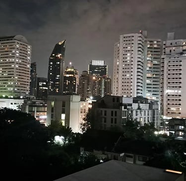 We are living in lovely residential apartment in the Thonglor area of the city, and it's about a 13 minute walk from the apartment to the Thong Lor BTS (Bangkok Mass Transit System) on the light green (Sukhumvit line). We can also use the complimentary shuttle bus from the apartment to the BTS but we haven't tried that yet.