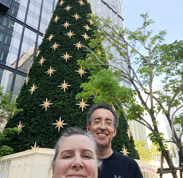 But today I don't have any of that as I'm not at 'home' in Glasgow, but in a location that, although it is decorated for Christmas, the heat is not quite computing that it's Christmas and it's definitely not the weather for Christmas Jumpers!