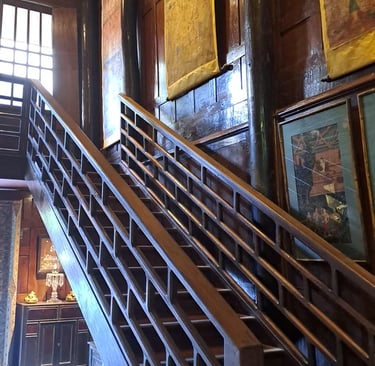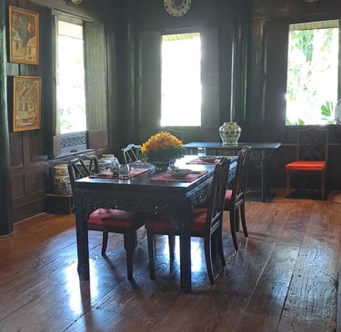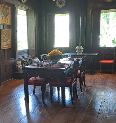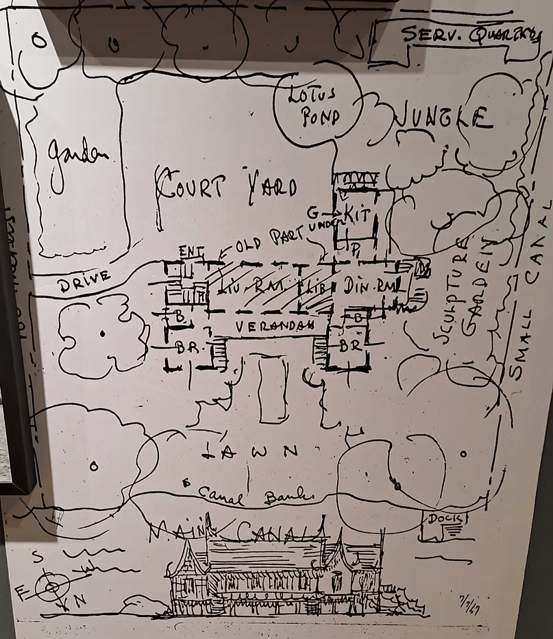 His home sits on a khlong (canal) Saen Saep across from Bangkrua, where his company's weavers were then located. Most of the 19th-century houses were dismantled and moved from Ayutthaya, but the largest, a weaver's house (now the living room), came from Bangkrua. Built in 1959, the house and museum spans approximately half an acre or 2023.43 square meters) and quite sad to think that he only got to enjoy his masterpiece and art collection for 7 years.