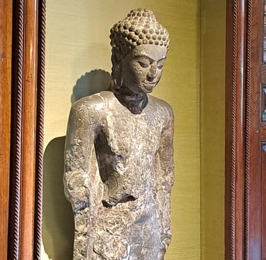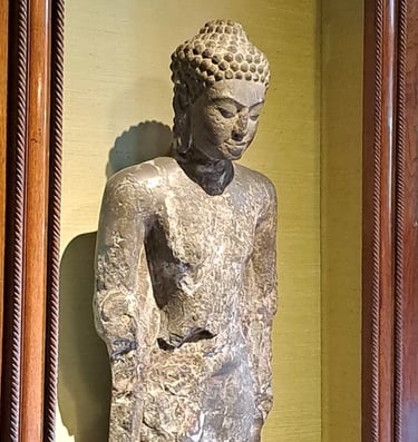 Following his relocation to Bangkok and the establishment of the Thai Silk Company Ltd. in 1948, Thompson also became a major collector of Southeast Asian art. He collected secular art not only from Thailand but from Burma, Cambodia, and Laos, frequently travelling to those countries on buying trips. His collection also consisted of white and blue porcelain from China, which made its way into Thailand around the 16th and 17th centuries.