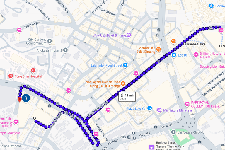 Fahrenheit88 and Starhill Gallery are directly across the road from each other on Jalan Bukit Bintang, making them extremely close and less than a 5-minute walk. They are connected via pedestrian walkways in the Bukit Bintang area, allowing for easy, sheltered, or direct walking access between the two malls.
