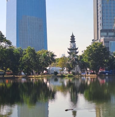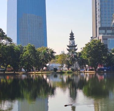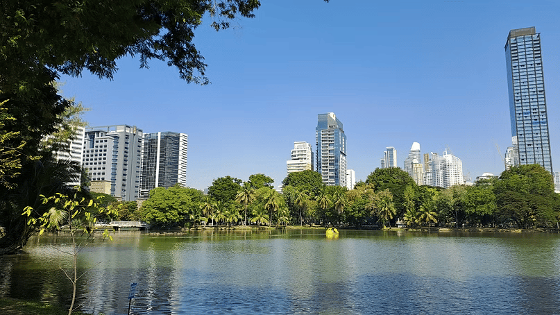 Today, the park lies in the heart of the main business district and is in the Lumphini sub-district, on the north side of Rama IV Road, between Ratchadamri Road and Witthayu Road.
