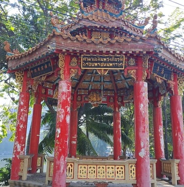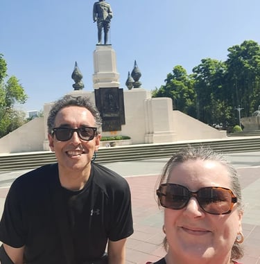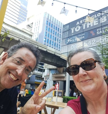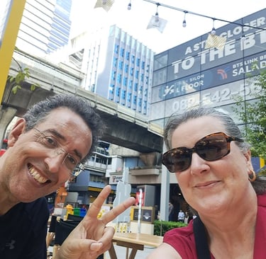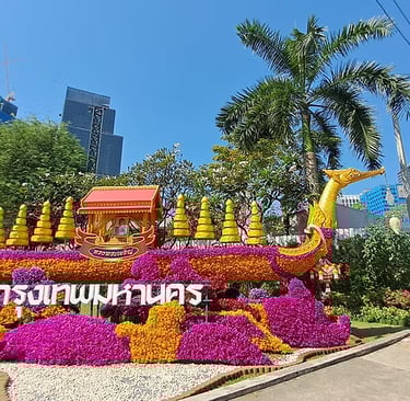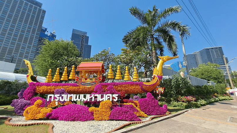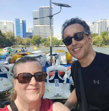 Today we made our way to Lumpini Park, which is a 25-minute walk from the apartment. On our way there, a nice Thai lady who recognised us as tourists informed us that the building we were looking at was a bank and asked us where we were going. We explained we were just walking around and she told us she was a Police Officer and would be working in Lumpini Park, but it would be better to come there later in the afternoon as stalls would all be set up then for the current festivities. She suggested we go on the canal boat instead. We thanked her, but because we had experienced some nice helpful people previously, we decided to just go with our original plan for the day, so we headed into the Park.