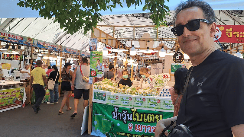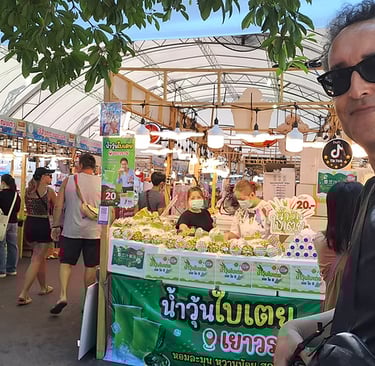 On our way to see the King Power Mahanakhon building, we stopped off at the Silom Complex shopping mall, which is right beside the Sala Daeng BTS station. The shopping mall had some much-appreciated air cooling, and it was not too big like some of the ones beside the Sukhumvit line. We had a quick look around in here, but as it was lunchtime by this time, it was quite busy with the office lunch crowd, so we decided to pass on eating here and have a later lunch. A quick refreshment stop, and we were on the move again, passing some really interesting little streets selling all varieties of fruits and vegetables.