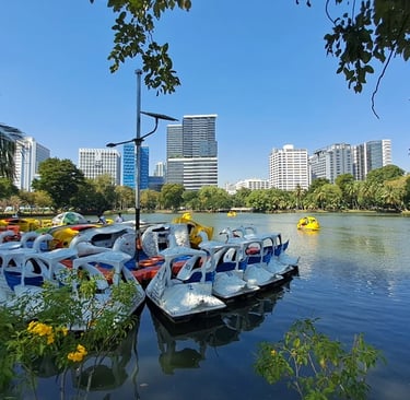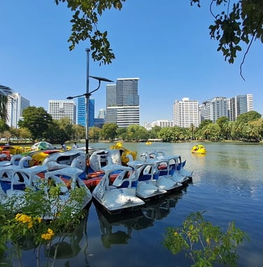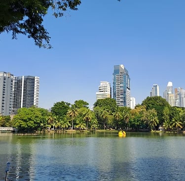 Lumphini Park is a 142-acre park in Bangkok, Thailand. The park offers open public space, trees and playgrounds in the capital and contains an artificial lake where visitors can rent boats. Paths around the park totalling approximately 2.5 km in length are a popular area for morning and evening joggers. It is regarded as the first public park in Bangkok and Thailand.
