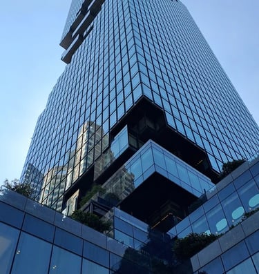 Finally, we had arrived at the King Power Mahanakhon, a mixed-use skyscraper in the Silom/Sathon central business district of Bangkok, which was opened in December 2016. It features the unconventional appearance of a glass curtain-walled square tower with a cuboid-surfaced helix cut into the side of the building. With 77 floors, it was recognised as the tallest building in Thailand on 4 May 2016. Featuring a hotel, retail and residences, 200 units of The Ritz-Carlton Residences. It is one of the most expensive condominiums in Bangkok.
