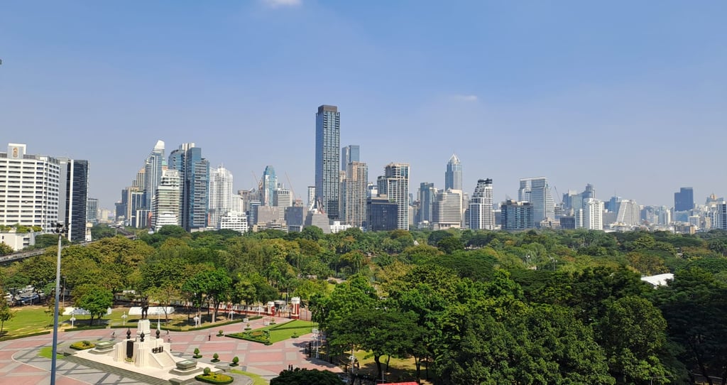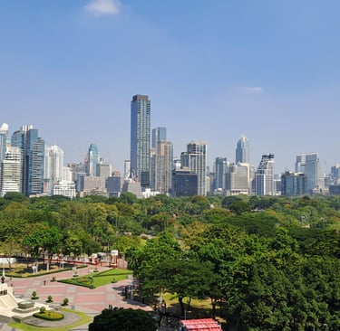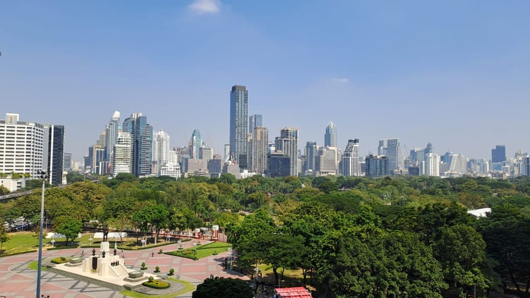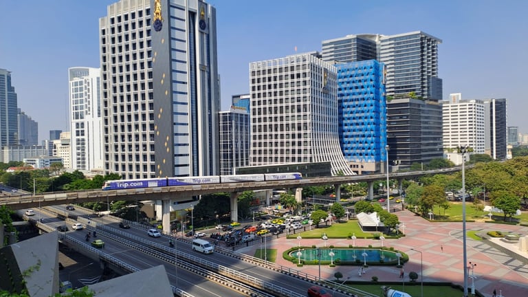Dusit Central Park is a mixed-use skyscraper development in the Bang Rak district. It occupies a 9.1-acre site on the corner of the Sala Daeng Intersection at the beginning of Si Lom Road in the financial district of Bangkok. It has replaced the old Dusit Thani Hotel, which was located here from 1970 to 2019. The location overlooks the vast expanse of Lumphini Park, making it a prime real estate property. The complex comprises three skyscrapers: a new hotel, a residential tower and an office tower, connected by an eight-storey retail podium featuring a rooftop park.