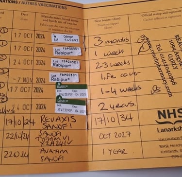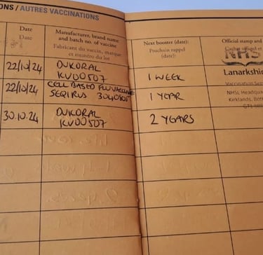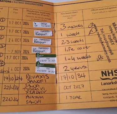 Note 2: There are only so many vaccinations (usually 2) that you can get done at any one time in any arm, so again, you need to ensure that you do not end up in a situation like we did where you are running out of time to get the courses completed before you travel.