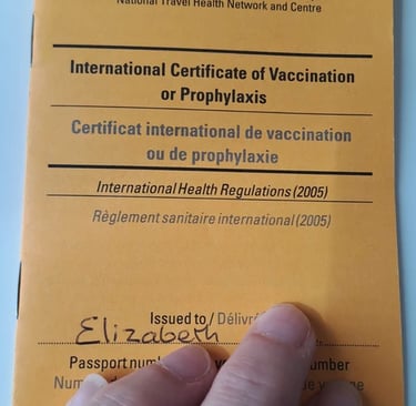 All of our travel vaccinations are recorded in a little yellow booklet, which you take with you to the provider each time you are getting any vaccinations, and they complete the details of the vaccination in this. This is handy to carry with you (I keep these in the folder with our passports), and it also reminds you of when future vaccinations are due.