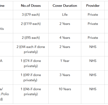 Note 4: Be aware that some travel clinics (NHS and private ones) may only operate on certain days of the week, so this may impact your schedule for getting the vaccinations, also, especially if you need a few visits and doses before your travel dates.