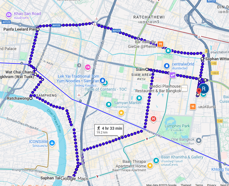 So, onto today’s plan. We decided to head over to Chinatown via the public ferry. The main reason for this trip is to take A&A over to Chinatown to explore the area and to show them the various modes of transport to get there and back again. We all head off after breakfast. We took the shuttle bus to the BTS station, and then took the train to Siam (Central), where we switched from the Sukhumvit line (light green) to the Silom line (dark green) to the Sathorn ferry terminal (Saphan Taksin). From there, we took one of the public ferries a few stops to Ratchawong (N5).