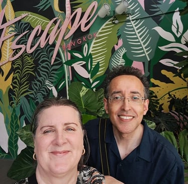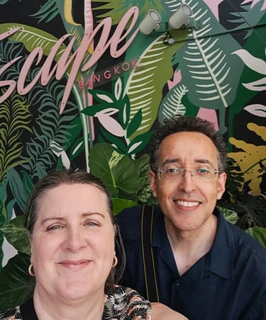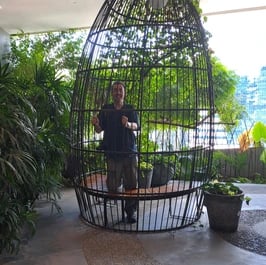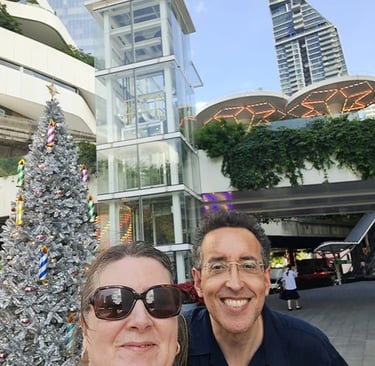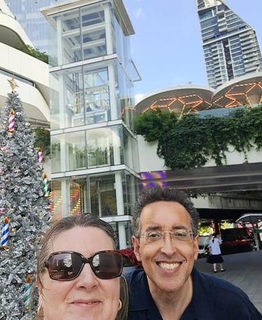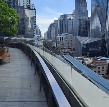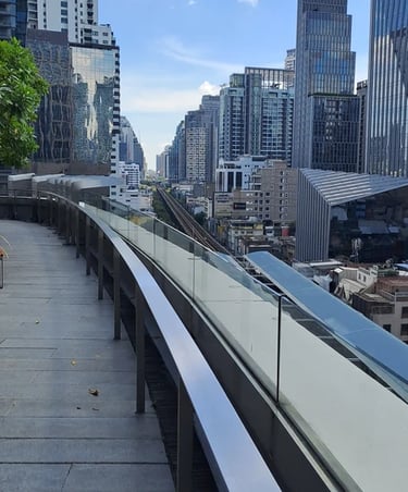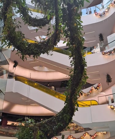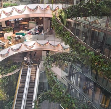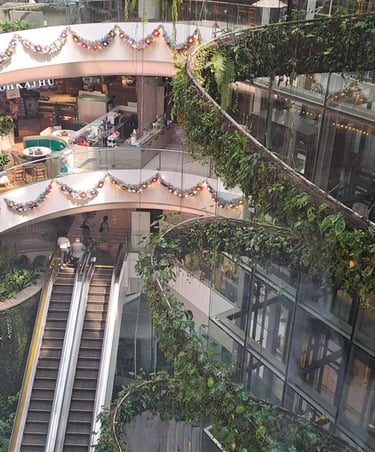 We especially loved all the plant and tree greenery, the waterfalls and the views of Bangkok from the top level of the building. There was an external connecting walkway to a restaurant or hotel in the upper floor but it had a large circular piece of glass that neither one of us felt brave enough to walk over as you could see a long way down...