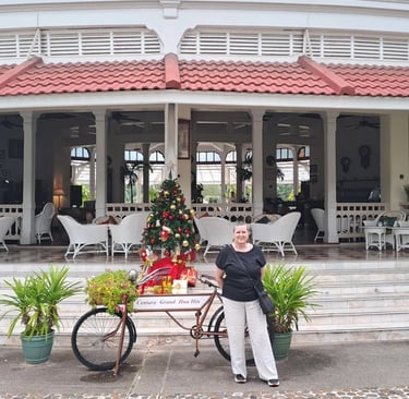 As I may have mentioned previously, I have a love of old architecture (now, now that's not the reason that I married R!) but after visiting the Hua Hin railway station (the old and the new one), I thought it would be quite nice if we went and visited The Railway Hotel.