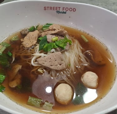 Before we knew it, R was having a case of the rumbletums, and that meant it was time for dinner. We headed off to the Market Village and R had his usual of a rice and pork dish, and I had a pork noodle soup followed by a mango sticky rice.