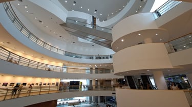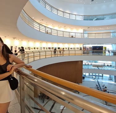 After lunch, R, S, and I head out. Our first place of call is the Bangkok Art & Culture Centre (BACC). The BACC is a contemporary arts centre in the Siam area of Bangkok. Art, music, theatre, film, design and cultural/educational events take place in its exhibition and performance spaces. The centre includes cafes, commercial art galleries, bookshops, craft shops, and an art library.
