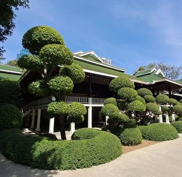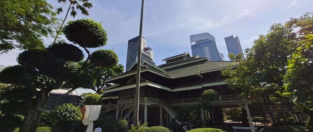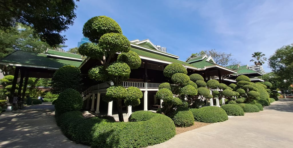 Not long after, we came to Nai Lert Park Heritage Home, which is a 22-square-meter park, heritage home, and museum in Bangkok, Thailand. Located in Pathum Wan district, the home was designed and built in 1915 by developer Nai Lert. The park is considered to be the oldest one in Bangkok.