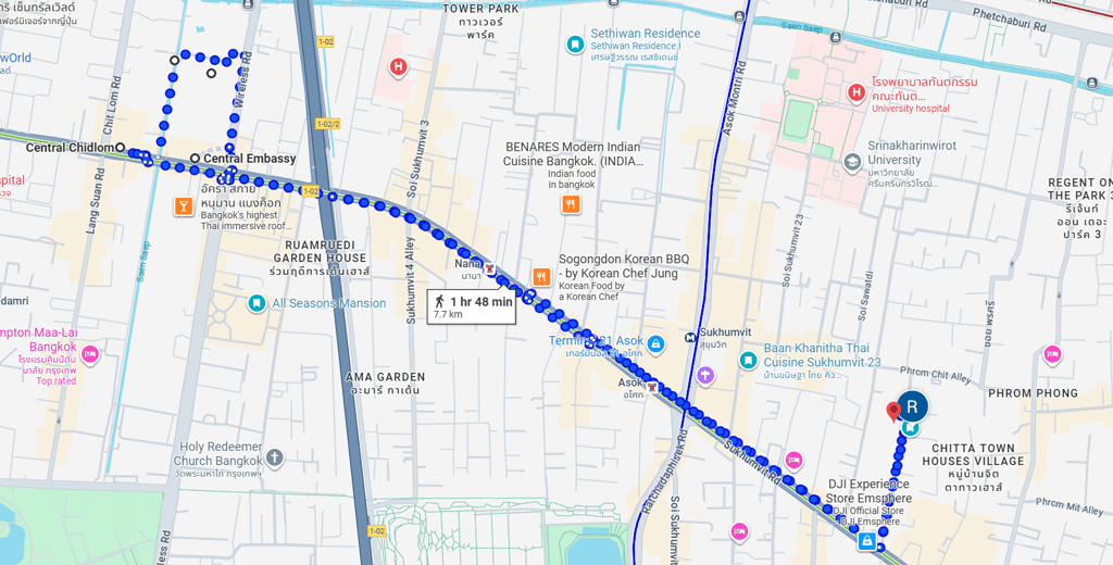 Right back to R and I. After seeing the girls off, we also set off on our merry way to explore the Central Embassy Mall. We haven’t done this one before, so we are looking forward to it. To get there, we take the BTS at Phrom Phong for a short ride to Phloen Chit, and we walk along the skywalk from there to Central Embassy.