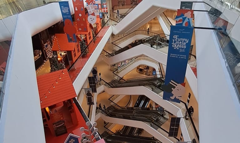 Central Embassy is a shopping mall in Bangkok. It was constructed on the site of the former British Embassy gardens on Phloen Chit Road, which explains why, later on during our outing, we noted a statue of Queen Victoria in an old park area close by.